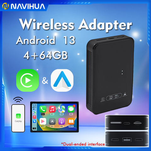 NaviHuaワイヤレスAppleCarplayAndroid自動ユニバーサルポータブルカープレイスマートボックスワイヤレスアダプタードングルOEMAiボックスカープレイ
